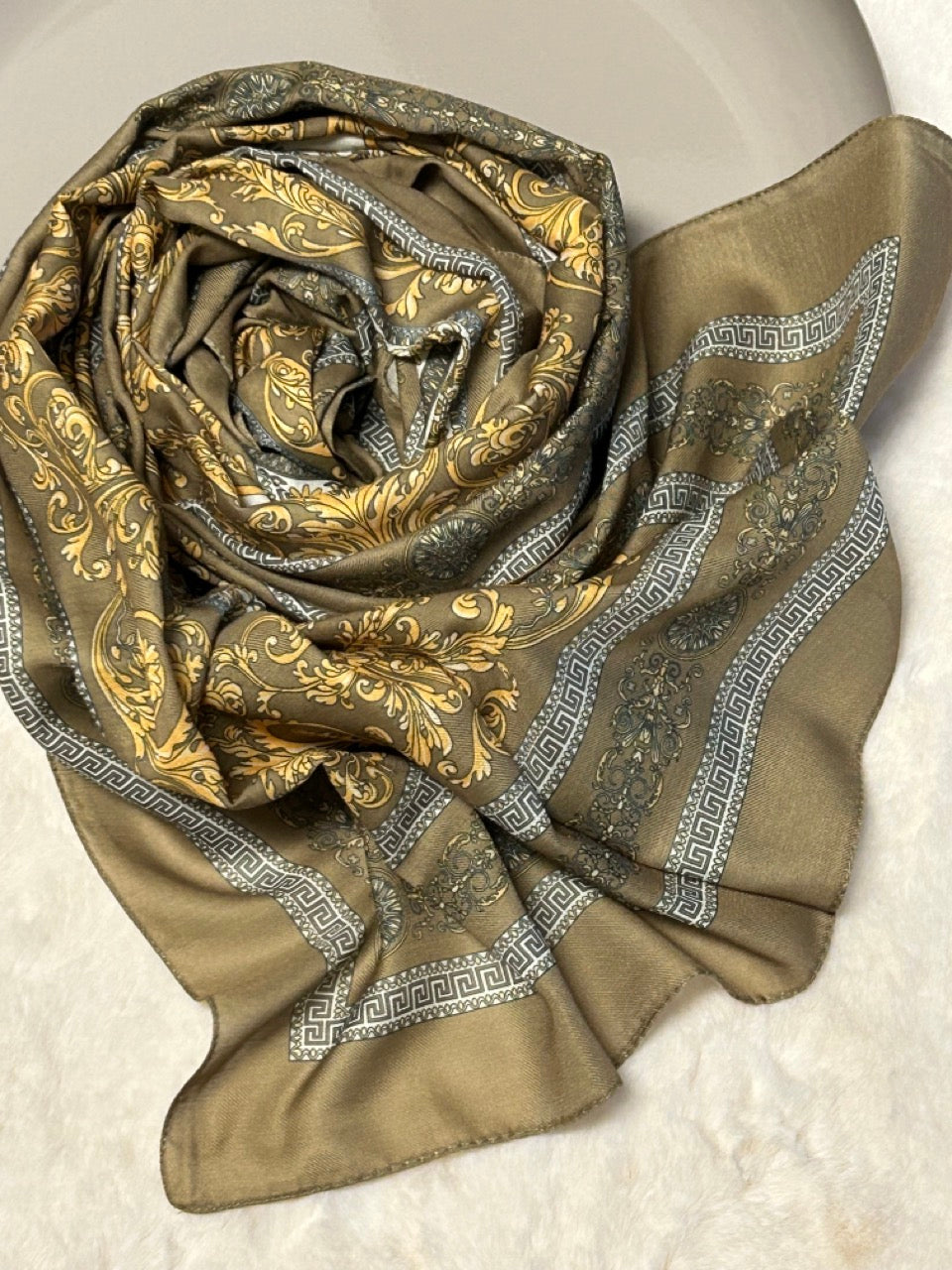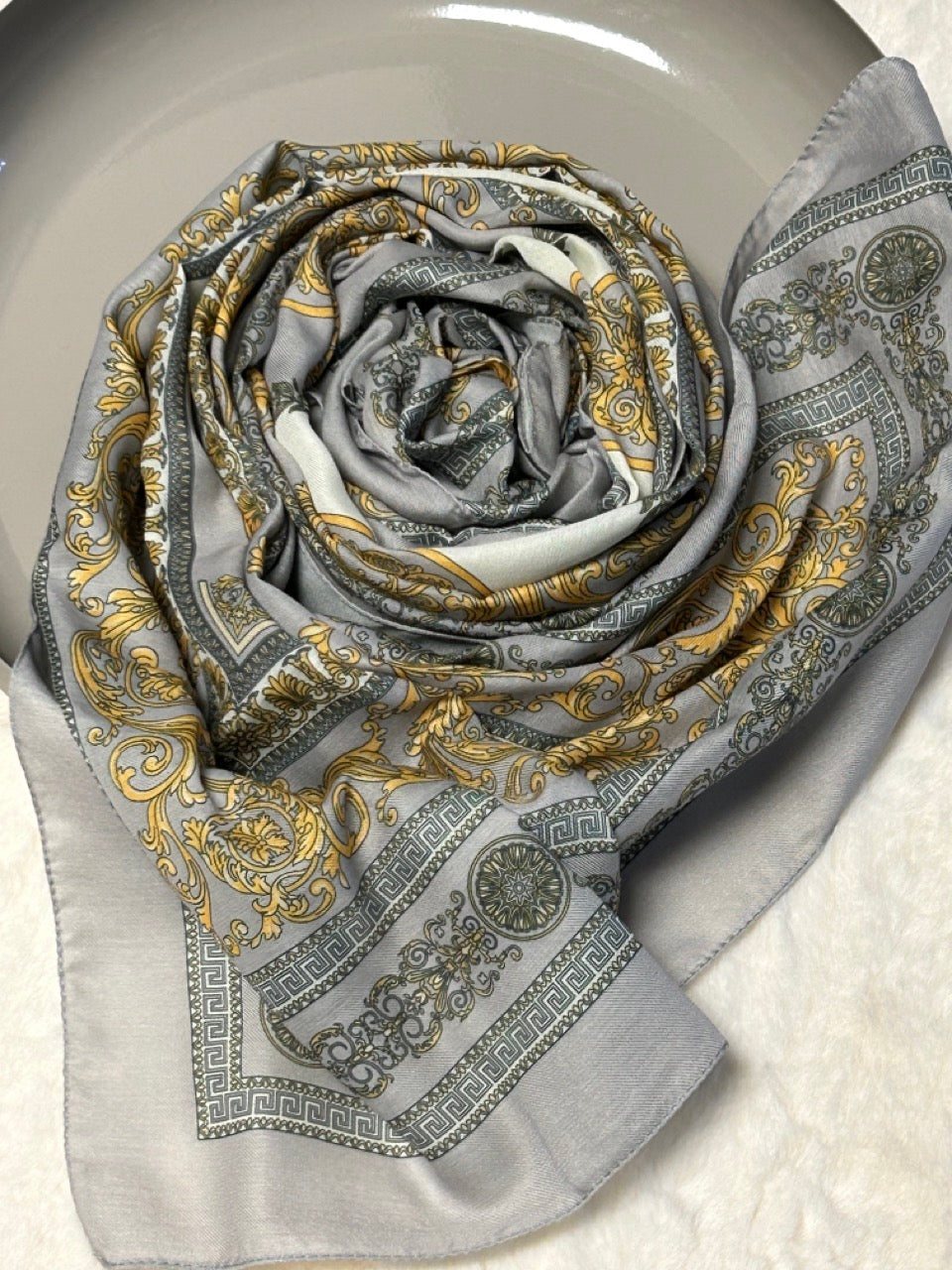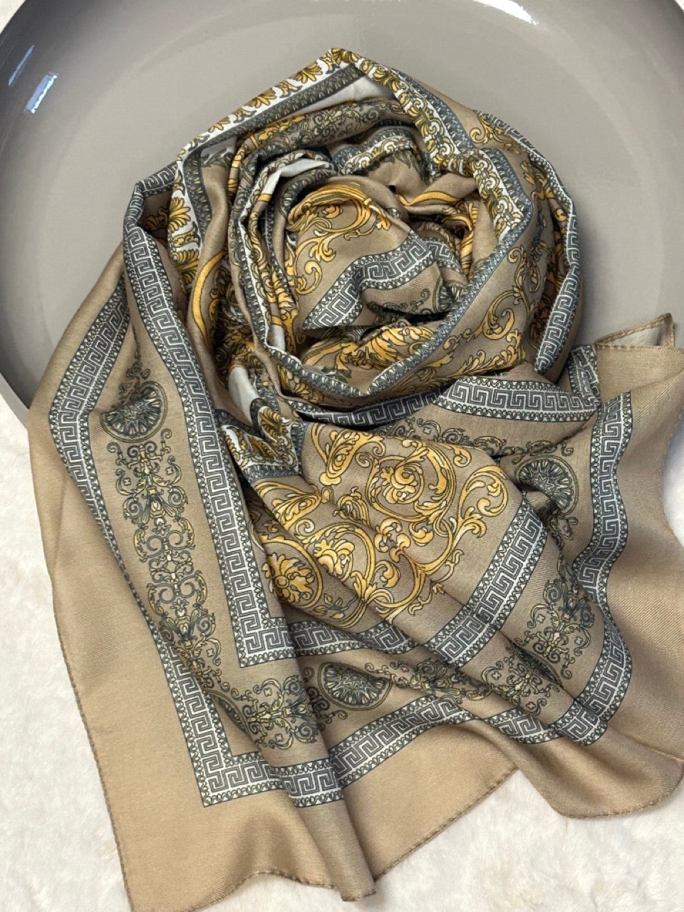Dieser elegante Schal in Barock Optik verbindet Komfort mit luxuriösem Glanz. Mit seinen großzügigen Maßen von 75 x 190 cm bietet er vielseitige Trageoptionen – ob als modisches Accessoire um den Hals, als stilvolles Kopftuch oder als geschmackvolle Ergänzung zu verschiedenen Outfits.