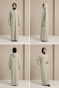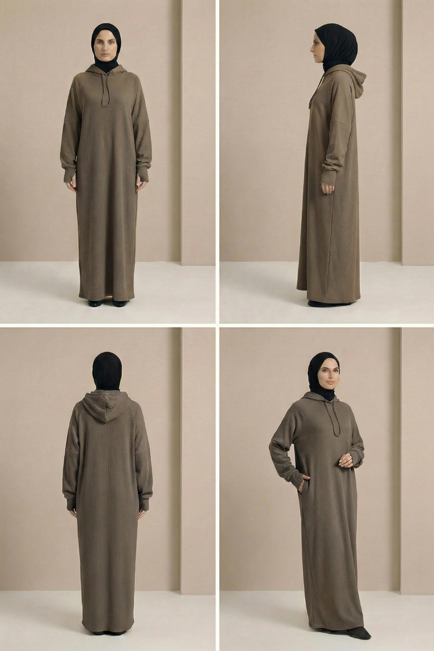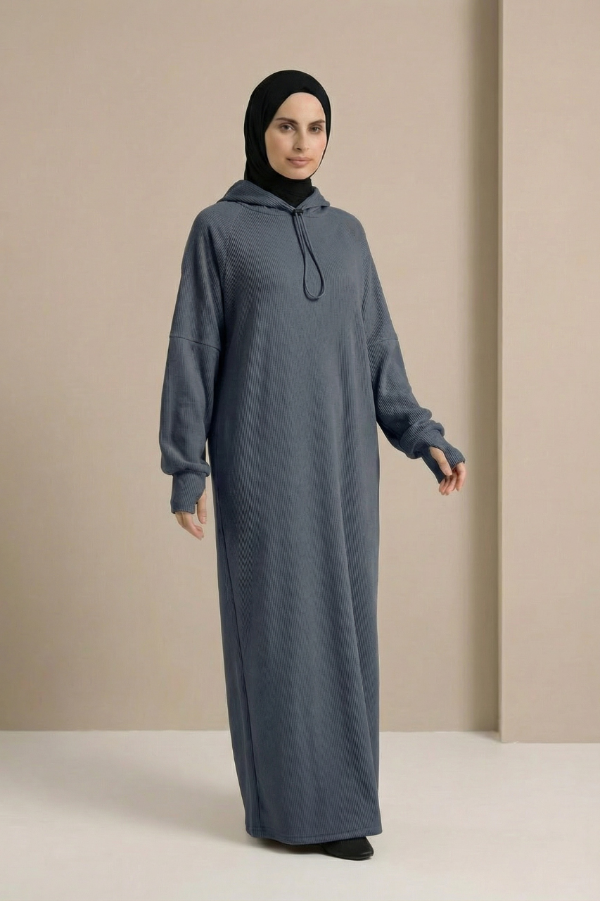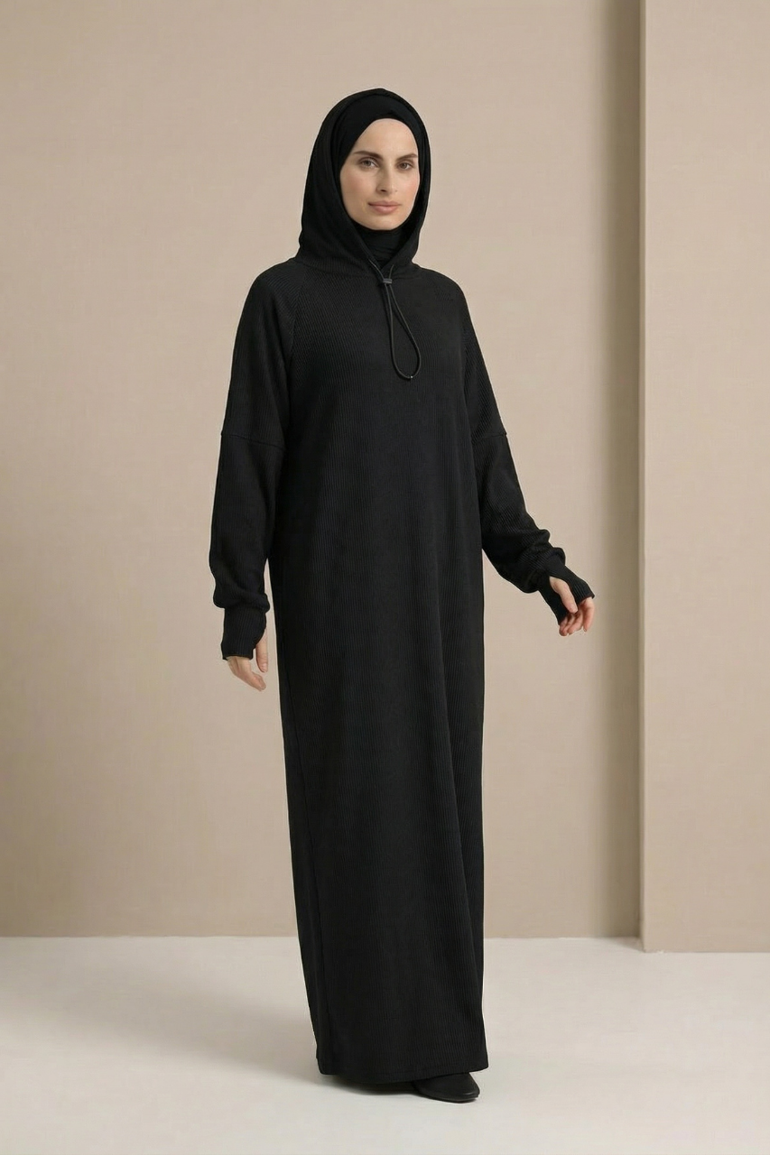 Die integrierte Kapuze verleiht dem Kleid einen sportlich-urbanen Touch und macht den Look zugleich modern und vielseitig kombinierbar. Ein besonderes Highlight sind die verlängerten Ärmel, die sich bei Bedarf einfach über die Hände ziehen lassen. Das bietet nicht nur zusätzliche Wärme, sondern kreiert auch einen coolen, trendbewussten Style, der sich perfekt in aktuelle Fashion-Trends einfügt.