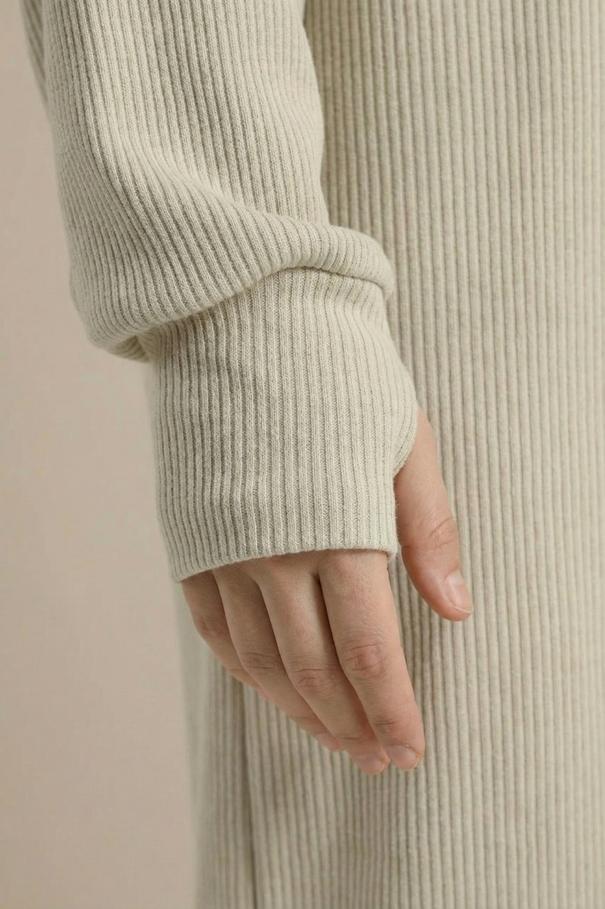 Dieses Kleid aus hochwertigem, geripptem Stretch-Material vereint lässigen Komfort mit modernem Design und ist damit ein echtes Must-have für kühlere Tage. Mit einer Länge von ca. 1,40 Metern bietet es einen schmeichelhaften, eleganten Fall und sorgt gleichzeitig für angenehme Wärme. Die weiche, dehnbare Stoffstruktur schmiegt sich optimal an den Körper an und ermöglicht maximale Bewegungsfreiheit – perfekt für entspannte Alltagslooks und gemütliche Freizeitmomente.