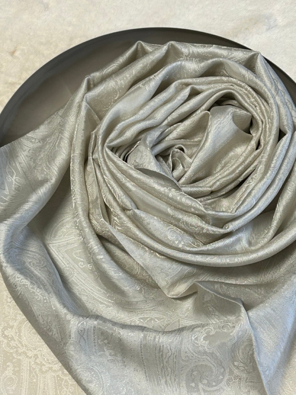 Eleganz in ihrer feinsten Form – Luxuriöser Jacquard-Schal mit edlem Ornamentmuster. Der weich fließende Stoff mit feinem Glanz verleiht jedem Outfit eine elegante und ausdrucksstarke Note – perfekt für besondere Anlässe und stilvolle Alltagslooks.
