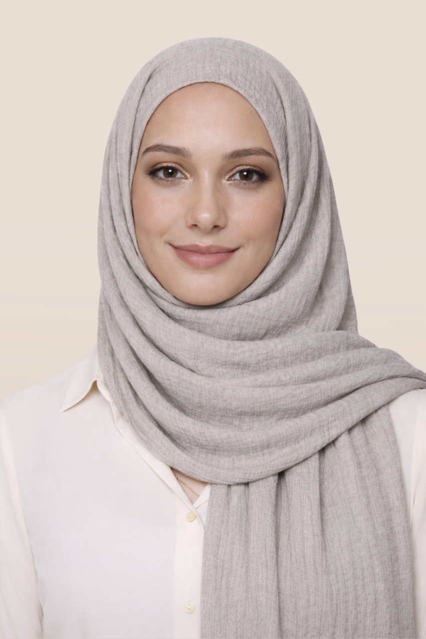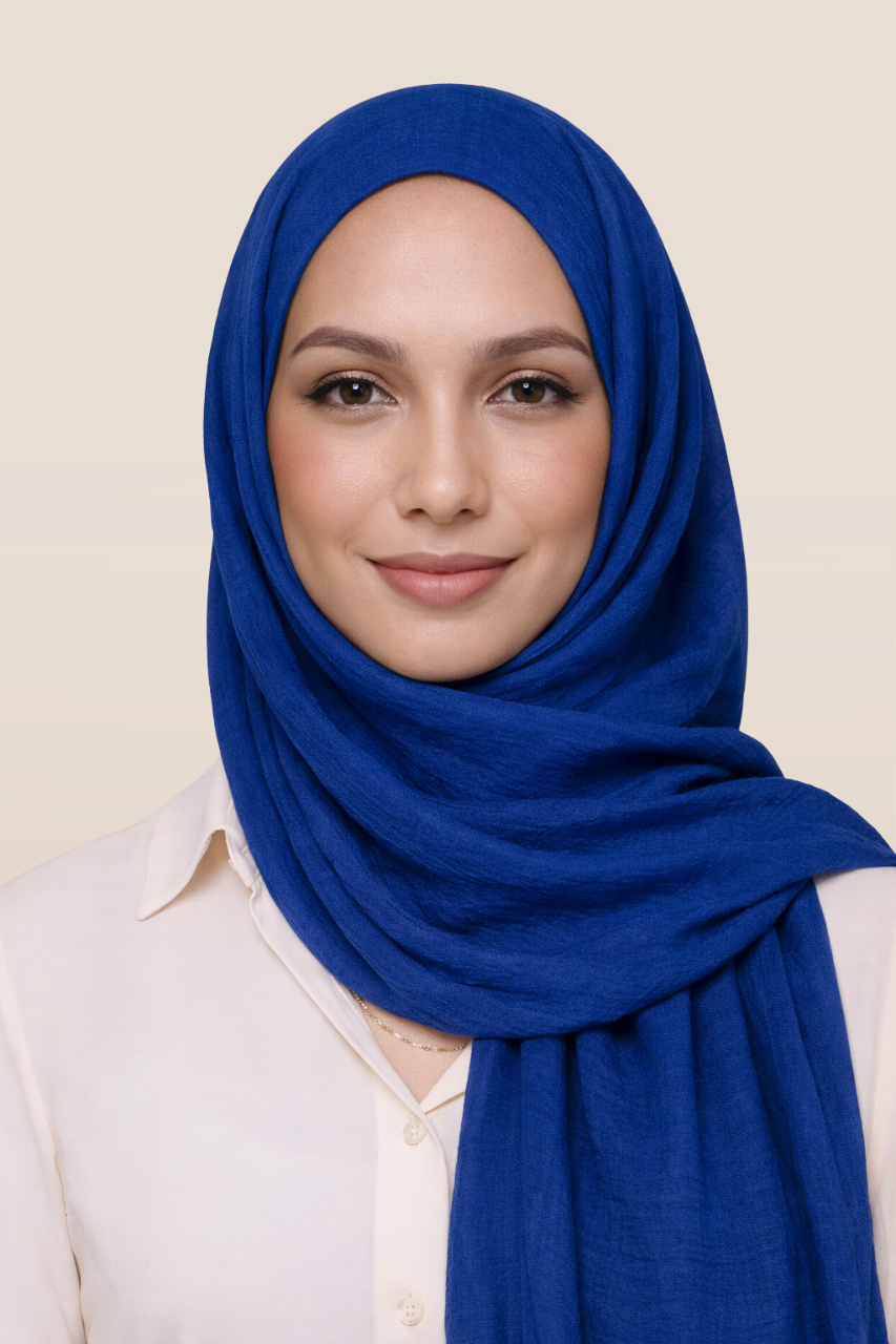 Leichter, weicher Hijab mit feiner Crinkle-Struktur. Blickdicht, pflegeleicht und vielseitig kombinierbar – perfekt für Alltag und besondere Anlässe.